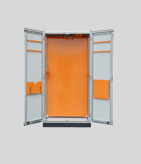 內部結構框架采用優質冷軋鋼板折彎成形,采用焊接成形,上置吊環與鋼件直接相連,保證架體的強度和吊裝強度,承重600KG。圍板采用優質冷軋鋼板,所有圍板均可拆卸,方便內部電器設備的組裝和多個單柜并柜連接,底板為多塊活動蓋板,保證走線方便靈活。眉頭分不銹鋼、鋁型材、冷軋板可選裝,柜體顏色可根據用戶選訂處理。